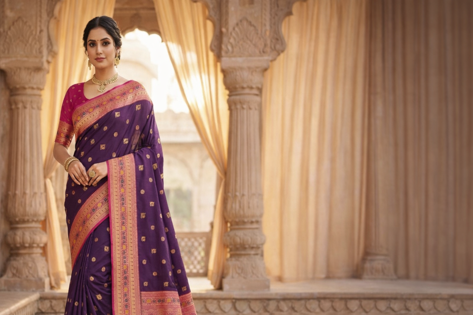 Pink space silk saree