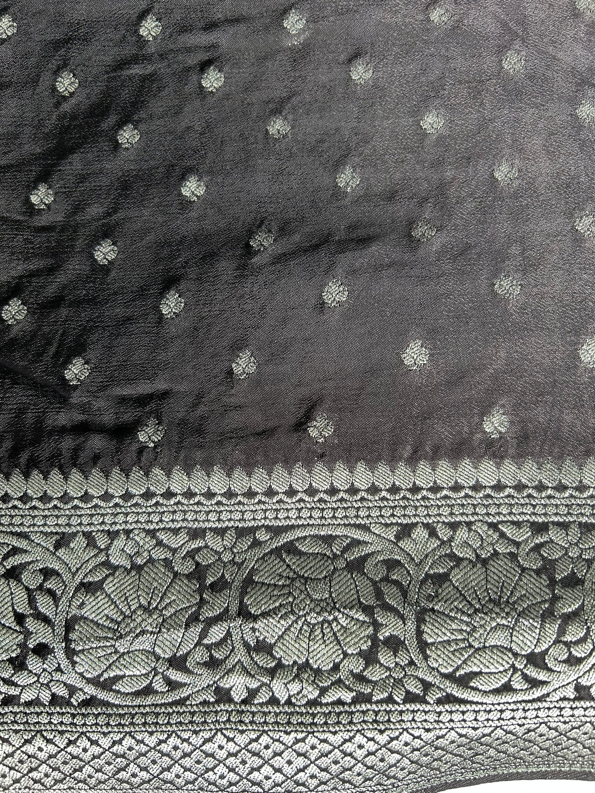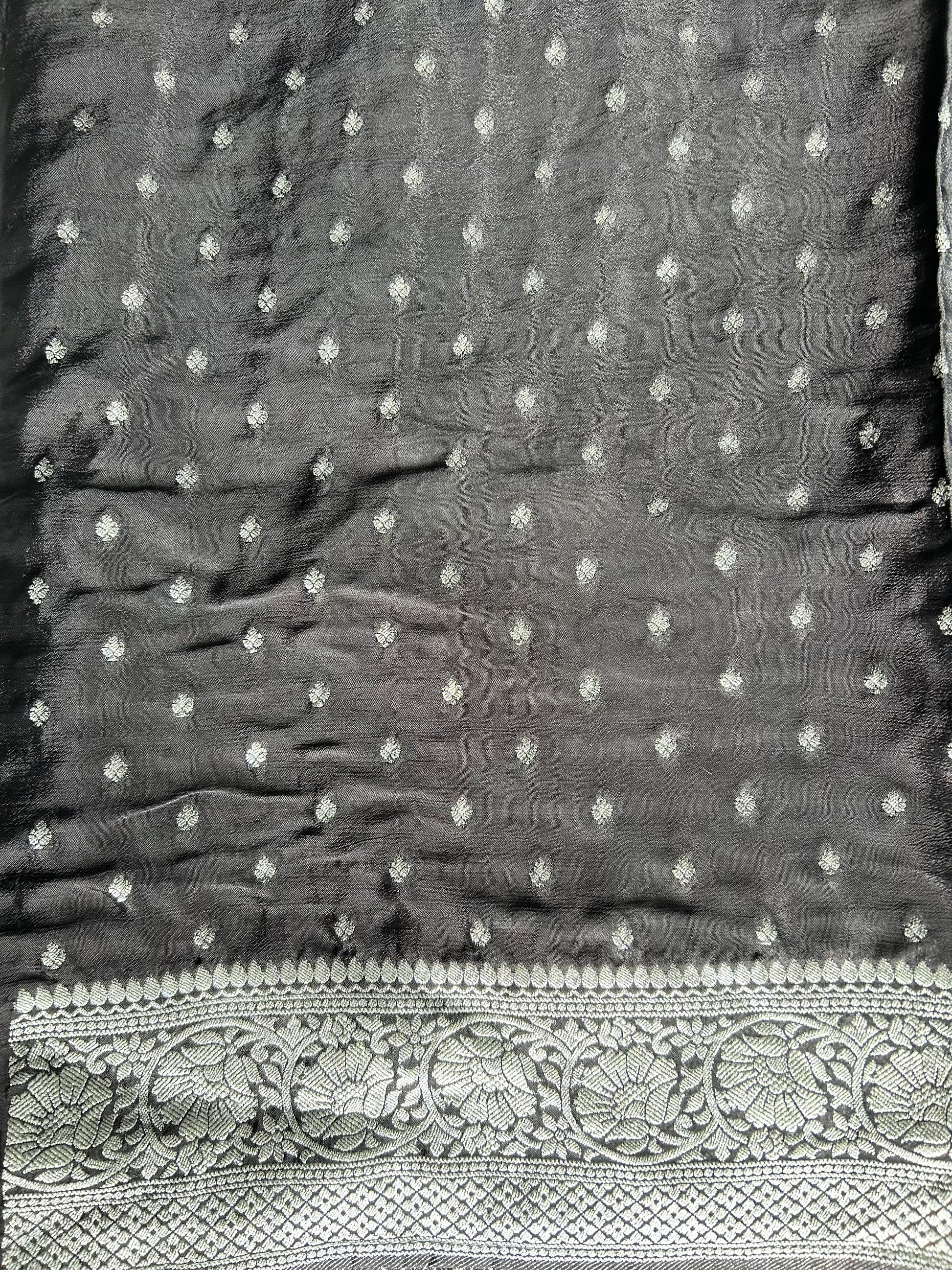 Black Banarasi crepe silk saree